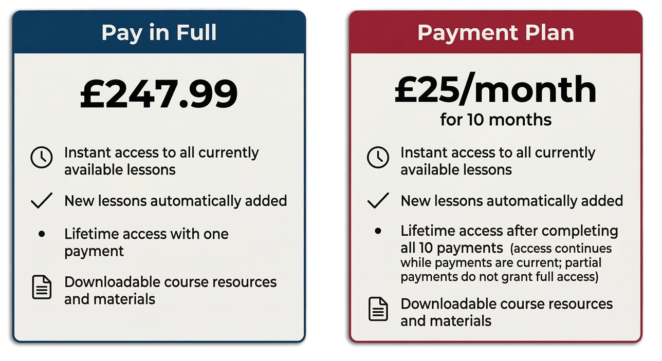 If you find the course isn’t the right fit, we offer a 14-day money-back guarantee. Simply reach out to us via our 'Contact Us' page or by email, and we'll be happy to assist with the refund process. Your satisfaction is important to us!