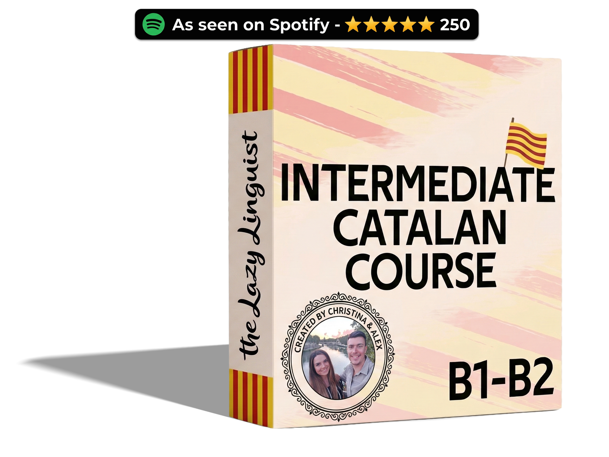 The Lazy Linguist Intermediate Course is designed to help A2 learners move beyond the basics and start using Catalan with confidence. Across 50 lessons, you’ll learn through engaging podcast episodes, detailed lesson notes, and curated vocabulary lists. To make learning even easier, you’ll get vocab videos of Christina pronouncing each word, flashcards to reinforce your memory and a bonus audio episode per lesson for extra practice. By combining listening, reading, and active practice, this course gives you everything you need to build sentences naturally, understand faster spoken Catalan, and speak with real confidence.
